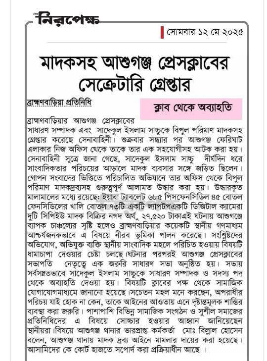 এই চেহারা ছবির একজন সাংবাদিক নেতা পেটে মাদকসহ গ্রেফতার হয়েছেন শুনে আশ্চর্য লাগতেছে! কতটুকু সত্য জানি না। তবে নিউজটি অসত্য তাও বলতে পারছি না। কেননা, অপরাধীরা এখন এরকম পোশাক চয়েজ করে যে পোশাককে মানুষ সম্মান করে; অপরাধী হিসেবে যে পোশাকের মানুষটিকে কেউ ধারণা বা কল্পনাও না করতে পারে। সেজন্য কৌশল হিসেবে চোর ডাকাত থেকে শুরু করে সুদখোর ঘুষখোর ও বাটপাররাও এখন নবীজীর এ সুন্নাতের অবমাননা করে যাচ্ছে। বাটপারি কাজের সুবিধার্থে তারা এগুলো করে। এর সংখ্যা খুব বেশি নয়। খুব কম। আবার এমনও আছে যে, প্রকৃত আদর্শ ও সৎ মানুষকেও নানা ধরনের মন্দ অপবাদ দিয়ে কেউ কেউ অপমান অপদস্ত করছে। কখনো কখনো এসব সৎ মানুষেরা পরিস্থিতির শিকার হয়ে বিনা অপরাধেও গাল খাচ্ছে, মার খাচ্ছে। জেল জুলুমের শিকার হচ্ছে। উনার ব্যাপারটা কতটুকু কি আমি জানি না। আল্লাহই ভালো জানেন। যদি সত্য হয়ে থাকে তাহলে বলবো এটা তার আসল চেহারা নয়। তিনি হুজুর বা আলেম নন। ফেঁক। আলেমের ভাব ধরে আকাম করে যাচ্ছিলেন হয়তো। এরকম মানুষ ধরা পড়লে এবং স্থানীয়রাও যদি সাক্ষী দেন যে, সে একজন বাটপার বা মাদক কারবারি। তাহলে তার দৃষ্টান্তমূলক শাস্তি হওয়া উচিৎ। শুনলাম, তিনি একটি প্রেসক্লাবের সাধারণ সম্পাদক! উনাকে নিয়ে একটি নিউজ হয়েছে কিন্তু তিনি কোন পত্রিকার সাংবাদিক তা ওই নিউজে পেলাম না। আমার মনে হয় তিনি কোন সাংবাদিক না। নামে থাকলেও কামে না। হয়তো অর্থনৈতিক বা যে কোন প্রভাব খাটিয়ে তিনি সাংবাদিকদের নেতৃত্ব দিয়ে যাচ্ছেন। উনার প্রেসক্লাবে যারা আছেন আমার মনে হয়, উনারা উনার কাছে জিম্মি। চাইলেও উনাকে বাদ দিতে পারতেছেন না বা তাকে বাদ দিয়ে প্রেসক্লাব চালাতে পারবেন না।