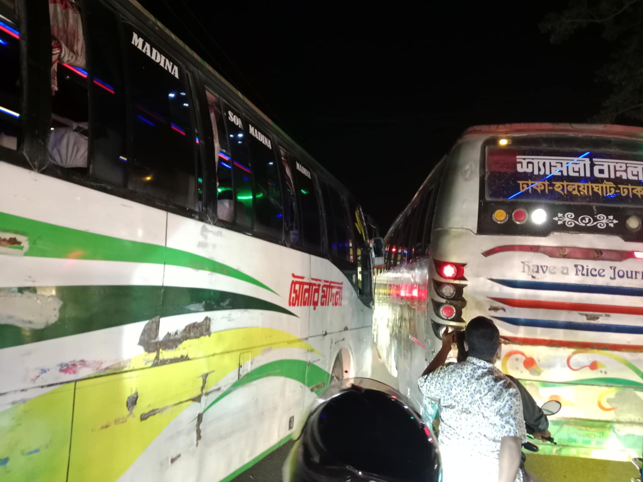 যাত্রী বাগিয়ে নেওয়ার জন্য আমাদের (ফুলপুর-ঢাকা, হালুয়াঘাট-ঢাকা, শেরপুর-ঢাকা) রোডের গাড়িগুলোর যে আচরণ আমরা লক্ষ্য করছি তা খুবই বিপজ্জনক, কষ্টদায়ক ও আশংকাজনক। এতে যাত্রী ভোগান্তি তো হচ্ছেই এমনকি দুর্ঘটনা ঘটারও সমূহ সম্ভাবনা রয়েছে। হয়তো ভাগ্যক্রমে আমরা বেঁচে যাচ্ছি। পরিস্থিতি এমন দেখা দেয় যে, বাঁচার কথা না।