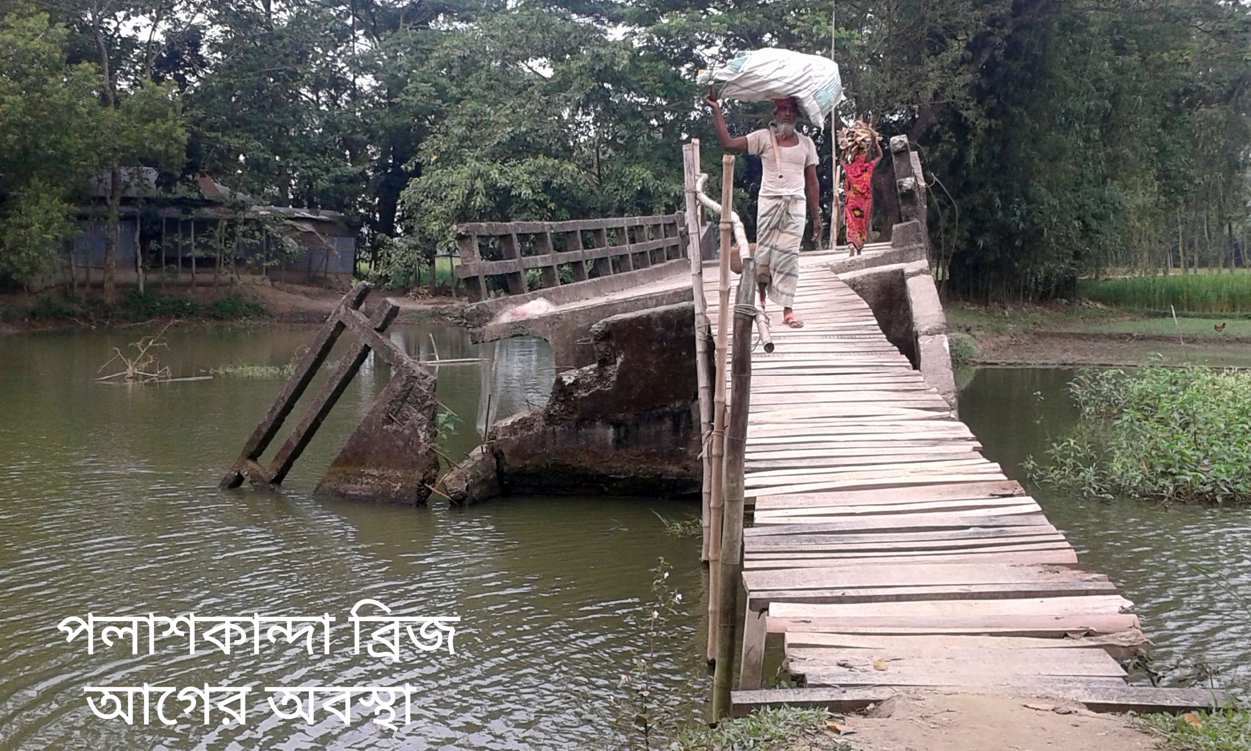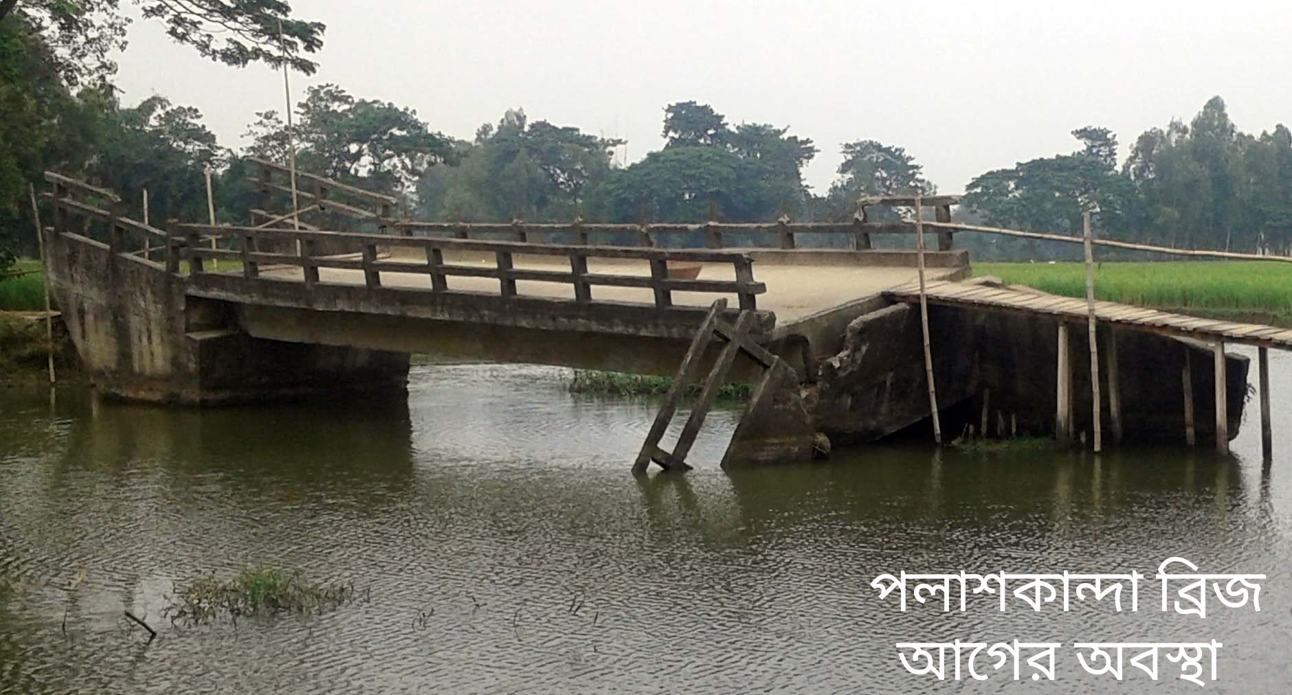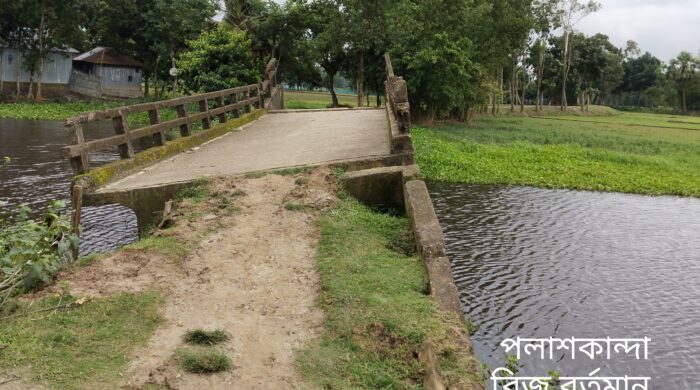 ময়মনসিংহের ফুলপুর উপজেলার সিংহেশ্বর ইউনিয়নের পলাশকান্দা গ্রামে মালিঝি নদী থেকে বের হয়ে আসা খালের উপর উত্তরপাড়া জামে মসজিদ ও শহীদের বাড়ির মাঝখানে বড় পুটিয়া বাজারে যাওয়ার রাস্তায় ১৯ বছর ধরে ভেঙে কাত হয়ে পড়ে আছে একটি ব্রিজ! দফায় দফায় বিভিন্ন গণমাধ্যমে লেখালেখি করলেও আওয়ামী লীগ সরকারের ১৬ বছরে এমনকি বর্তমান অন্তর্বর্তীকালীন সরকারের এক বছর অতিক্রান্ত হলেও আজও এটি মেরামতের কোন উদ্যোগ নেওয়া হয়নি।