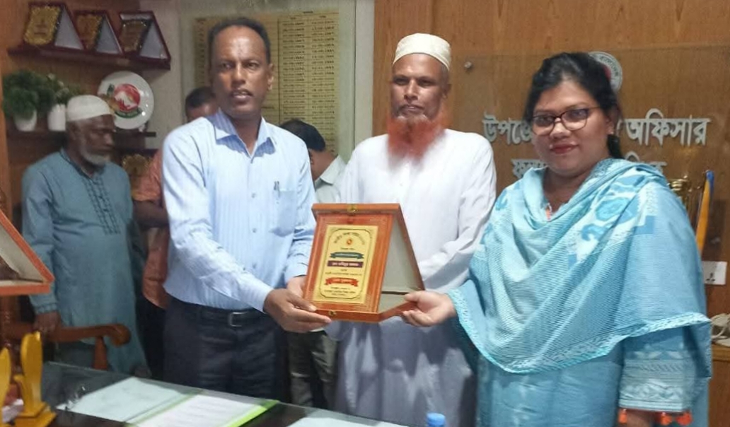 আজ বৃহস্পতিবার (১৬ এপ্রিল) তাকে শ্রেষ্ঠ প্রতিষ্ঠান প্রধান হিসেবে ঘোষণা দেওয়া হয়। পরে দুপুর ১টার দিকে উপজেলা পরিষদ সম্মেলন কক্ষে উপজেলা নির্বাহী অফিসার সাদিয়া ইসলাম সীমা তার হাতে পুরষ্কার তুলে দেন। পুরষ্কার হিসেবে তাকে সম্মাননা ক্রেস্ট ও সনদ প্রদান করা হয়। এসময় উপজেলা মাধ্যমিক শিক্ষা অফিসার আশরাফুল ইসলামসহ অনেকেই উপস্থিত ছিলেন।