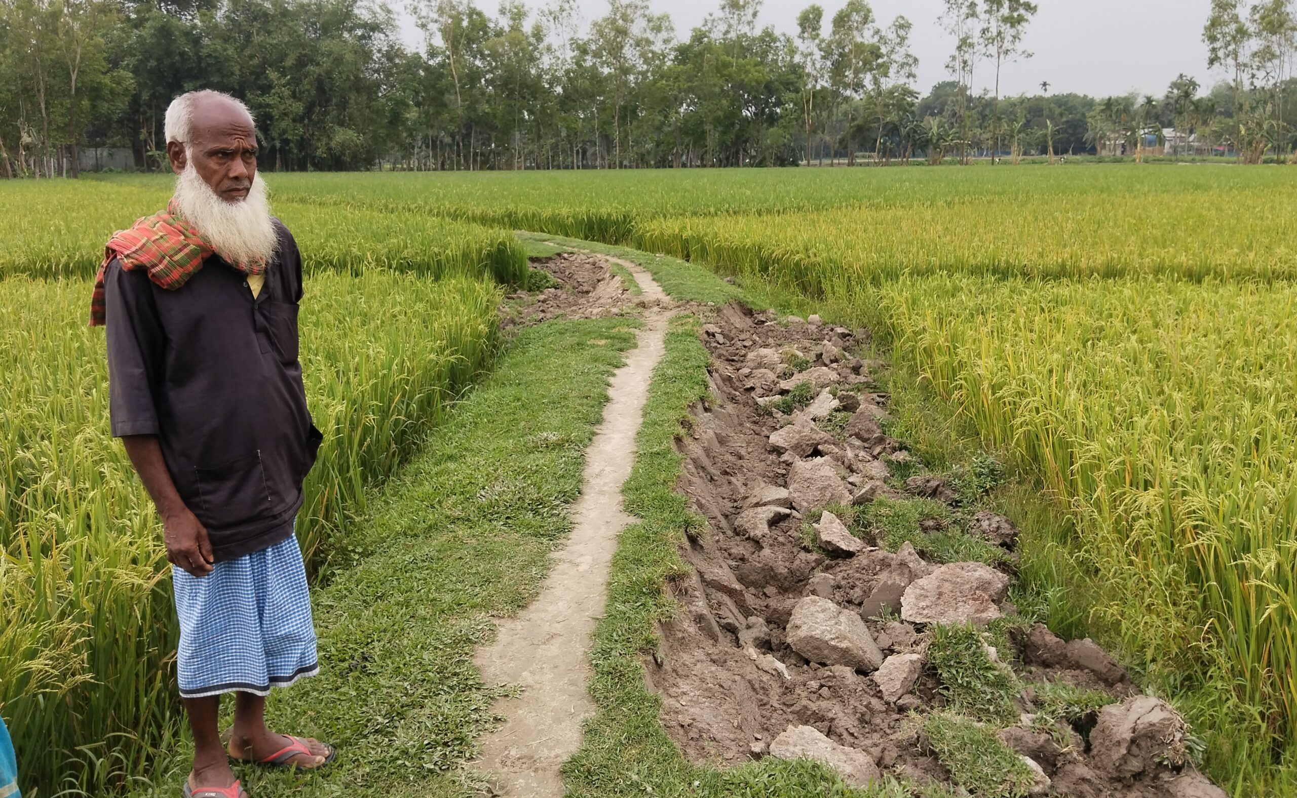 সরেজমিন গিয়ে দেখা যায়, রহিমগঞ্জ বাজার থেকে পশ্চিমে সিলার বাজার যাওয়ার পাকা রাস্তা থেকে কাঁচা রাস্তায় হাবির বাড়ির মোড় থেকে শামছুল হক ও আবু সামার বাড়ির মাঝখানের রাস্তা কোদাল দিয়ে কুপিয়ে কেটে ছোট বা চিকন করে ফেলা হয়েছে। কালভার্টের চুঙি সরিয়ে ফেলা হয়েছে।