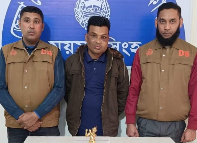 স্বর্ণের মূর্তি দেওয়ার কথা বলে প্রতারণা করে পিতলের মূর্তি দেওয়ায় ময়মনসিংহ জেলা গোয়েন্দা পুলিশের কাছে এমদাদুল হক (৪০) নামে প্রতারক চক্রের এক সদস্য আটক হয়েছে। ঈশ্বরগঞ্জে এ প্রতারণার ঘটনা ঘটে। জানা যায়, একটি চক্র পিতলের মূর্তিকে স্বর্ণের মূর্তি দেখিয়ে সাধারণ মানুষের নিকট থেকে লক্ষ লক্ষ টাকা হাতিয়ে নিচ্ছে। গত ১৯ জানুয়ারি নিজাম উদ্দিন নামে এক ক্রেতার সাথে এ ধরনের একটি প্রতারণার ঘটনা ঘটে। নিজাম উদ্দিনকে স্বর্ণের মূর্তি দিবে বলে দুই লক্ষ টাকা হাতিয়ে নেয় বলে জানান নিজাম। পরে এ ভিকটিমের স্ত্রী ঈশ্বরগঞ্জ থানায় আজ ৩১ জানুয়ারি একটি মামলা করেন। মামলাটি রুজু হওয়ার পর পুলিশ সুপার মাছুম আহম্মেদ ভূঞা ওই চক্রের সদস্যদের গ্রেফতারের নির্দেশ প্রদান করেন। এরপর জেলা গোয়েন্দা পুলিশের একটি টিম ধারাবাহিকভাবে অভিযান পরিচালনা করে আজ আড়াইটার দিকে প্রতারক চক্রের সদস্য এমদাদুল হককে ঈশ্বরগঞ্জ বাজারের ঠাকুরের হোটেলের সামনে থেকে আটক করে। এমদাদ ঈশ্বরগঞ্জের কুরসীপাড়া গ্রামের আব্দুর রাশিদ ও আঙ্গুরা খাতুনের ছেলে। এসময় আটক এমদাদের হেফাজত হতে প্রতারণার কাজে ব্যবহৃত একটি পিতলের মূর্তি উদ্ধার করা হয়।