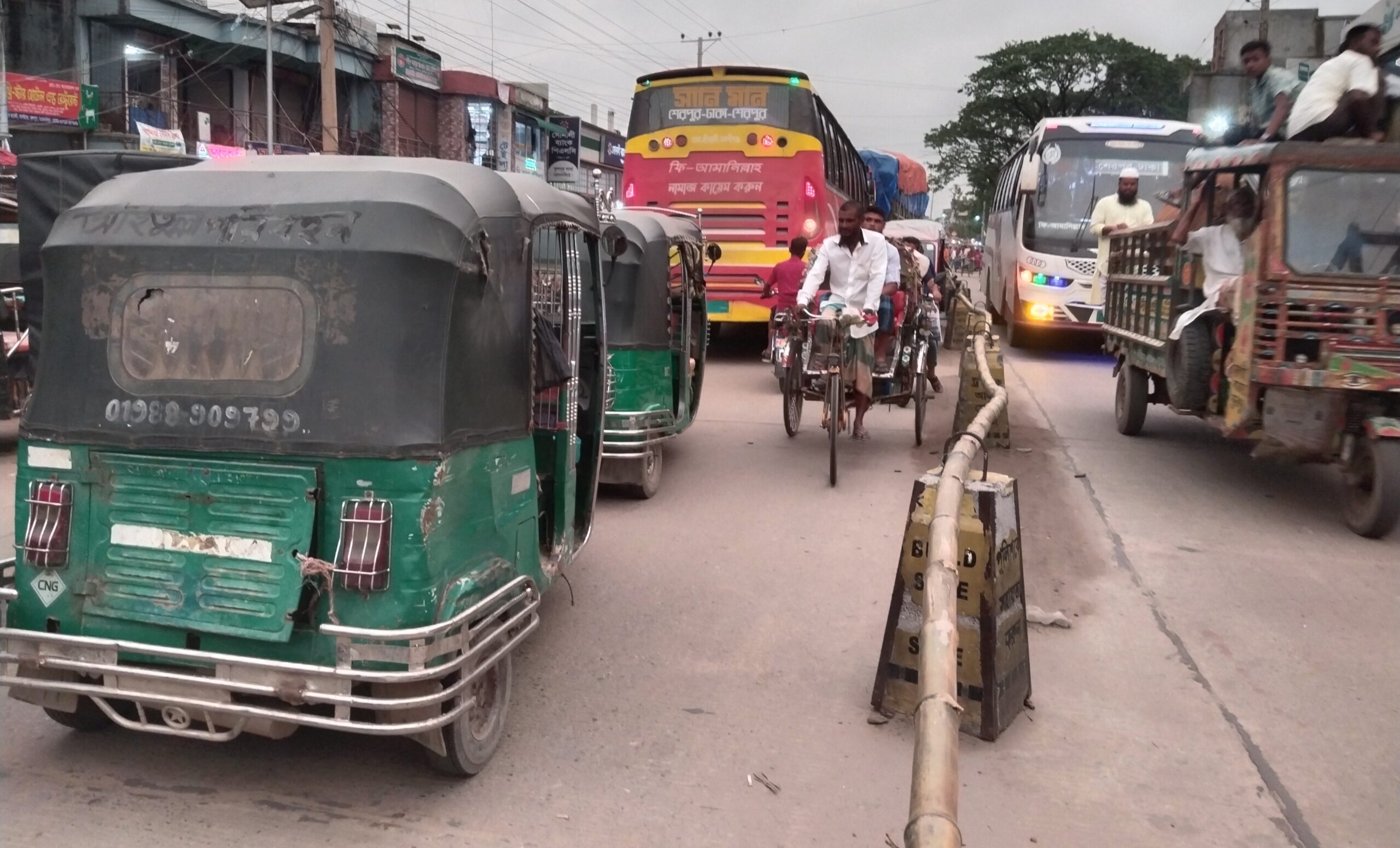 আগের পুরান বাঁশ বদলিয়ে নতুন বাঁশ দিয়ে তৈরি করা হয়েছে রোড ডিভাইডার। জিআই তার প্যাঁচিয়ে আরও মজবুত ও শক্ত করে বাধা হয়েছে। আগে যে যে জায়গায় বড় বড় ফাঁক ছিল, রিকশা বা মোটরসাইকেল ঢুকে পড়তো ওইগুলো বন্ধ করা হয়েছে। এখন যে ফাঁক রাখা হয়েছে তা দিয়ে রিকশা তো দূরের কথা কোন মোটরসাইকেলও ঢুকতে পারবে না।