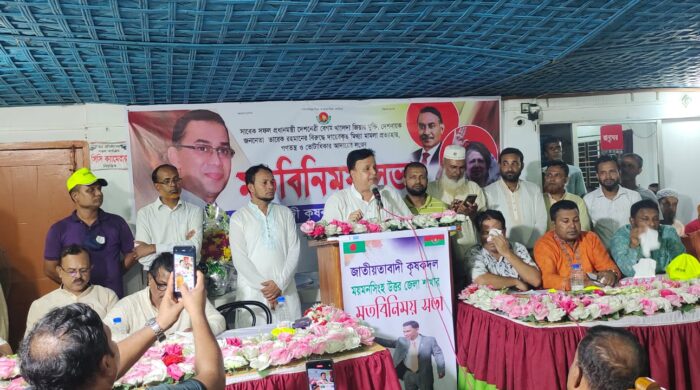 ফুলপুরে ময়মনসিংহ উত্তর জেলা কৃষক দলের উদ্যোগে সাবেক প্রধানমন্ত্রী বেগম খালেদা জিয়ার রোগমুক্তি কামনায় ও দ্রব্যমূল্যের ঊর্ধ্বগতির প্রতিবাদে মতবিনিময় সভা অনুষ্ঠিত হয়েছে। শনিবার (৬ জুলাই) বিকাল ৩টায় ফুলপুর পৌরসভার মহিলা কলেজ রোডে সানাই কমিউনিটি সেন্টারে ওই মতবিনিময় সভা অনুষ্ঠিত হয়। এতে প্রধান অতিথি হিসেবে বক্তব্য রাখেন বগুড়া-৪ আসনের সাবেক এমপি কেন্দ্রীয় কৃষক দলের যুগ্ম সাধারণ সম্পাদক মোশাররফ হোসেন। ময়মনসিংহ-২ আসনের সাবেক এমপি বীর মুক্তিযোদ্ধা এড. আবুল বাসার আকন্দের সভাপতিত্বে উত্তর জেলা কৃষক দলের সদস্য সচিব শাহ মোহাম্মদ আলীর সন্ধালনায় এতে প্রধান বক্তা হিসেবে বক্তব্য রাখেন, কেন্দ্রীয় কৃষক দলের সাংগঠনিক সম্পাদক (ময়মনসিংহ বিভাগ) সালাহ উদ্দিন খান মিল্কি।