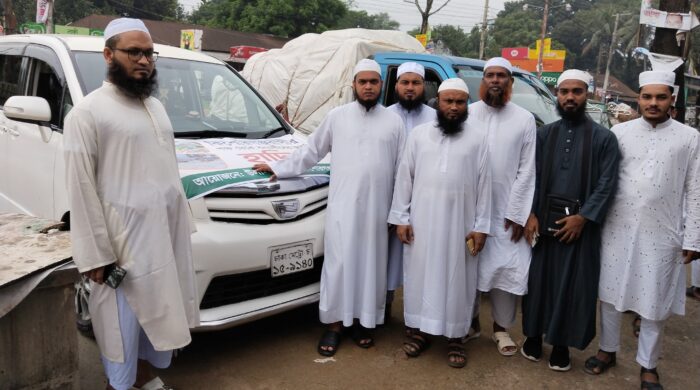 বন্যার্তদের জন্য সুখবর। আপনারা ভেঙে পড়বেন না। আল্লাহর উপর ভরসা করুন। ইবাদতে মগ্ন থাকুন। বিভিন্ন জায়গা থেকে ত্রাণ আসছে। আজ শুক্রবার (১১ অক্টোবর) সকাল ৯টার দিকে কিশোরগঞ্জ থেকে ত্রাণের গাড়ি এসেছে। ‘কিশোরগঞ্জ উলামা-ত্বলাবা’ ব্যানারে এসব ত্রাণ বিতরণ করা হবে। তারা অনেক শুকনো খাবার নিয়ে এসেছেন।
