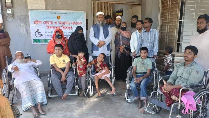 হালুয়াঘাটে প্রতিবন্ধীদের মাঝে হুইল চেয়ার ও সহায়ক উপকরণ বিতরণ
