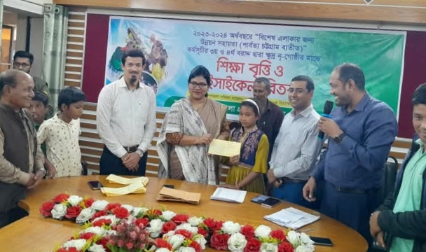 ময়মনসিংহের ফুলপুরে ক্ষুদ্র নৃ-গোষ্ঠী শিক্ষার্থীদের মাঝে শিক্ষা বৃত্তি ও বাইসাইকেল বিতরণ করা হয়েছে। বৃহস্পতিবার (৫ ডিসেম্বর) ২০২৩-২০২৪ অর্থবছরে বিশেষ এলাকার জন্য উন্নয়ন সহায়তা (পার্বত্য চট্রগ্রাম ব্যতীত) কর্মসূচির ৩য় ও ৪র্থ বরাদ্দ দ্বারা উপজেলা পরিষদের সামনে থেকে এসব উপহার দেওয়া হয়।