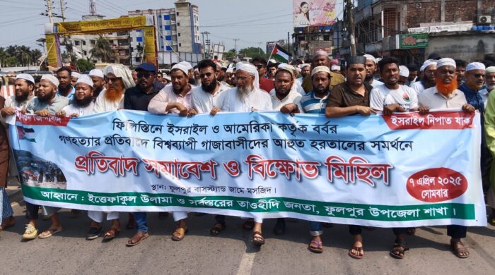 মো. আব্দুল মান্নান : ফিলিস্তিনের গাজায় ইসরায়েল চুক্তি ভঙ্গ করে নির্বিচারে অবুঝ শিশুসহ মুসলমানদের নির্মমভাবে হত্যা করছে। এর প্রতিবাদে ময়মনসিংহের ফুলপুরে বিক্ষোভ মিছিল ও প্রতিবাদ সভা অনুষ্ঠিত হয়েছে। শুক্রবার (২১