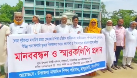 মো: আব্দুল মান্নান : নার্সিং পেশা ও নার্সদের নিয়ে কটুক্তি করায় ময়মনসিংহের ফুলপুরে মানববন্ধন কর্মসূচি পালিত হয়েছে। আজ শনিবার (১৪ সেপ্টেম্বর) সকাল ১১টায় ফুলপুর উপজেলা স্বাস্থ্য কমপ্লেক্সের সামনে ওই মানববন্ধন